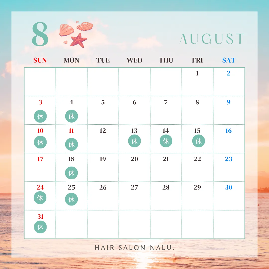 ◻︎8月13日〜15日はお盆明休みになりますので