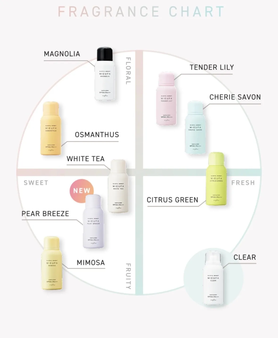 フレグランスUVスプレー「ミーファ」の紫外線予防効果は、日本基準最高値のSPF50+・PA++++。保湿効果のある植物由来のエキスと6種類のオーガニック